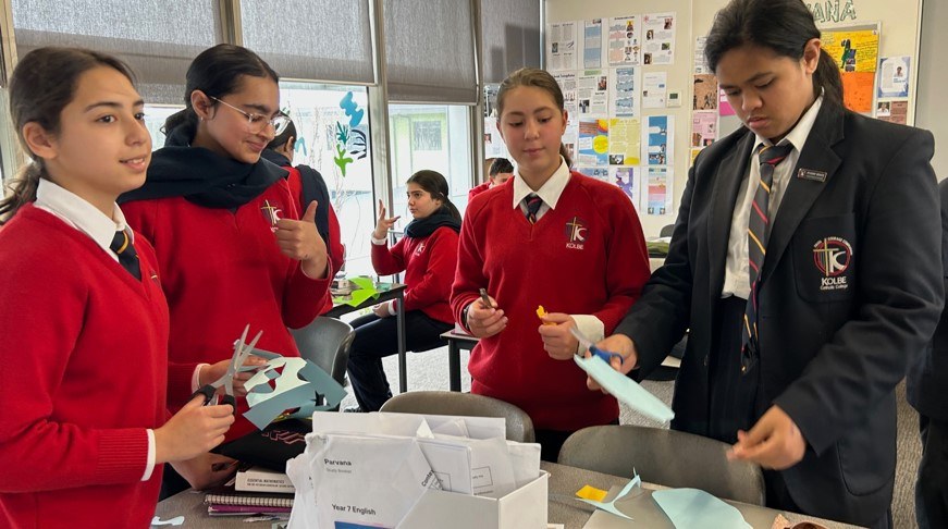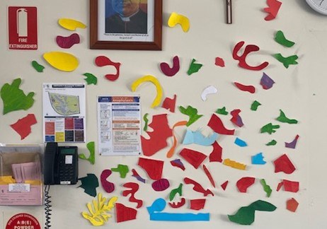 The Matisse Environment in C1.10 was created earlier this term by the 7A Art class. They were inspired by the work of Henri Matisse and his Cut-Outs as well as the Stained Glass Windows he created in The Rosary Chapel, Vence, France.