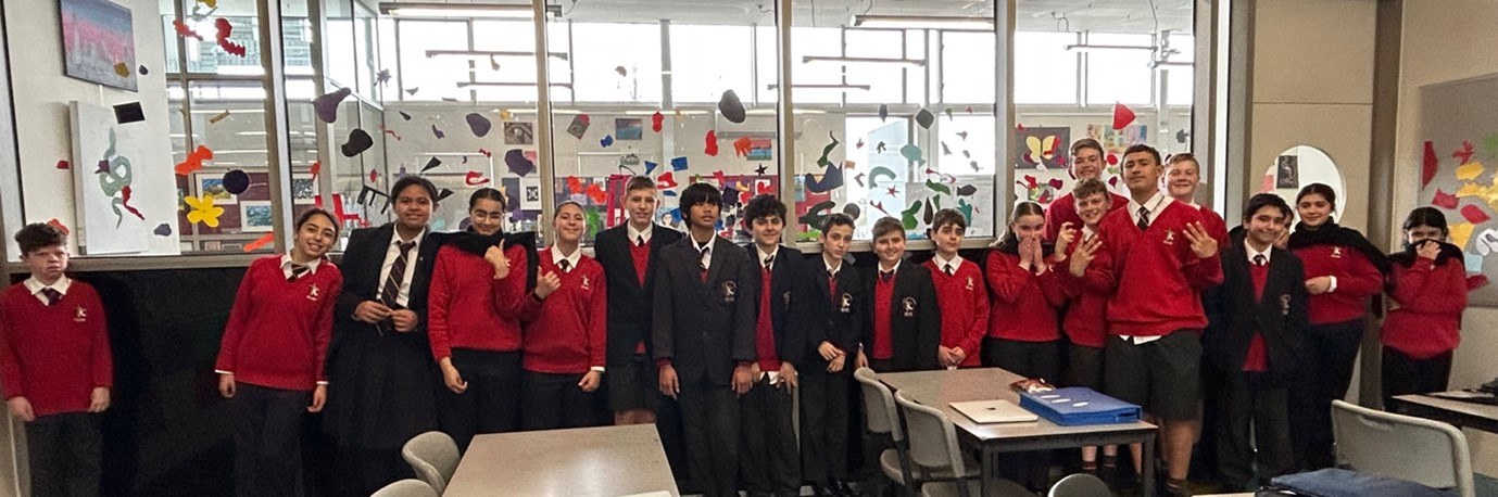 The class learnt about colour theory, analogous and split complementary colour schemes as well as organic shapes. They enjoyed the process of creating their individual colour shapes to become part of the entire scheme.